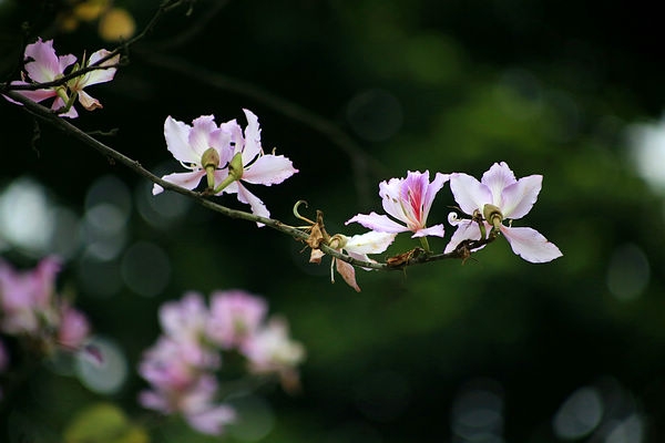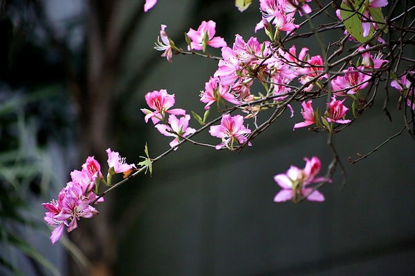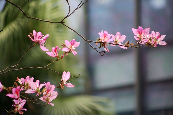 但是大自然按照规律正常运行,春天的脚步正在走近。桃花、梨花慢慢凋落后,樱花、紫荆花在逐步绽放,春色正浓。柳州近年大力推广紫荆花种植,每年三月中下旬,满城紫荆盛开,赏花游人如织,成为工业城市一张亮丽的名片。今年的气候偏暖,花期提前,比往年的花势稍逊,但也是姹紫嫣红,让人流连。和往年一样,我拿相机在办公楼附近,留下春天的印记。